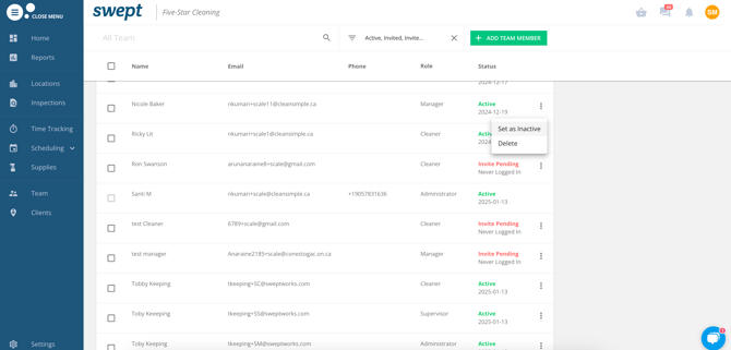 - Set as Inactive: This option retains the users' activity and hours logged in Swepts reporting, but the team member will no longer be able to log in.