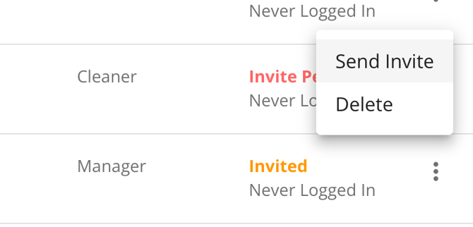 - After adding a new user, simply clicking on the three-dot menu and click send invite.